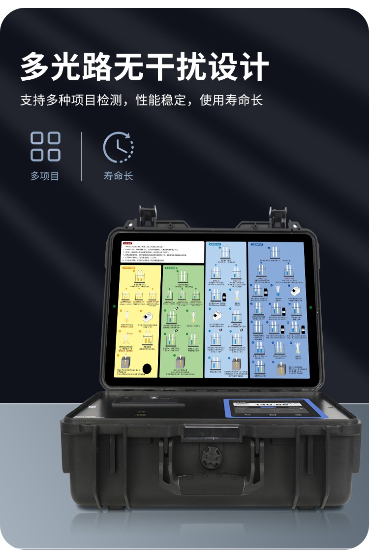 Portable water quality equipment for field use, the principle of the item measured is in accordance with the recognized method of the environmental protection industry.