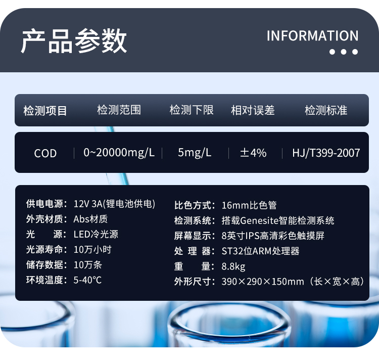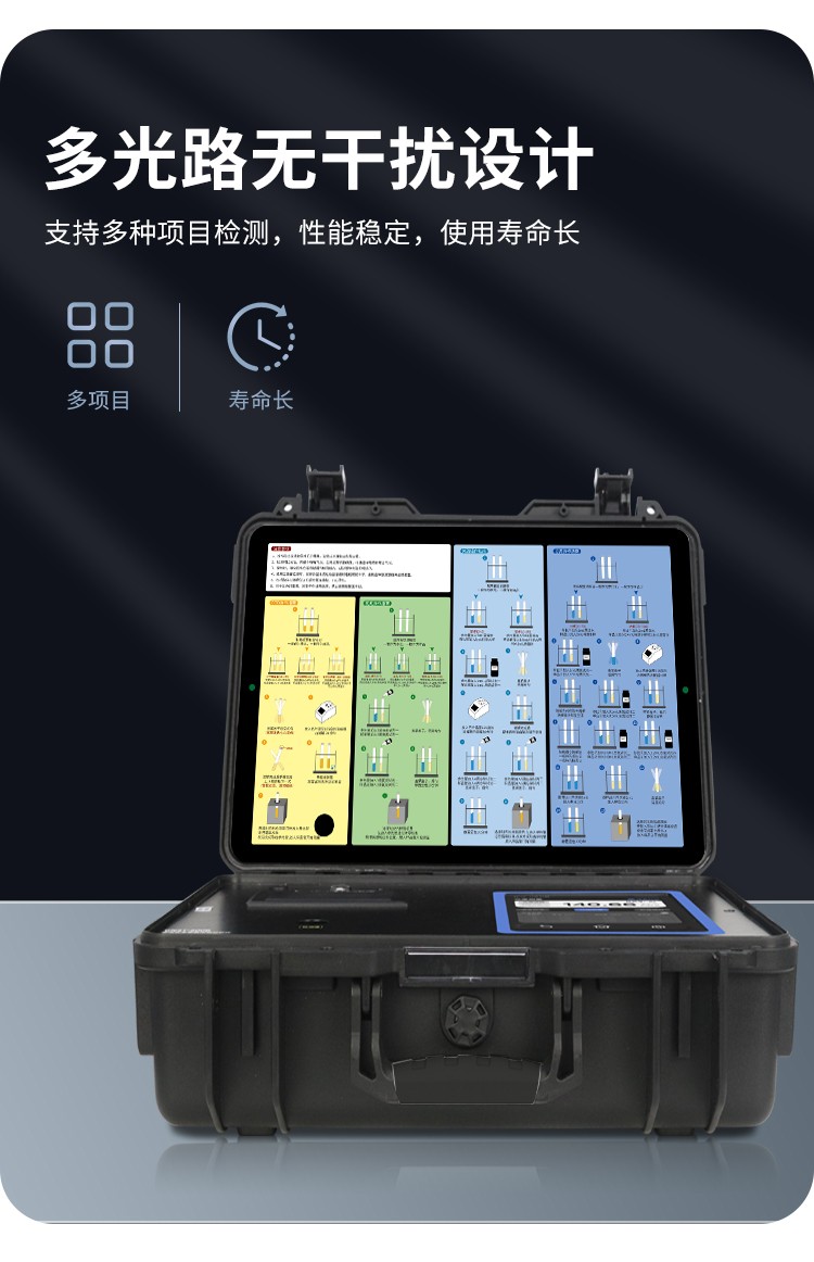 A portable water quality device that can be used in the wild, and the principle of the measurement project conforms to the recognized methods in the environmental protection industry.