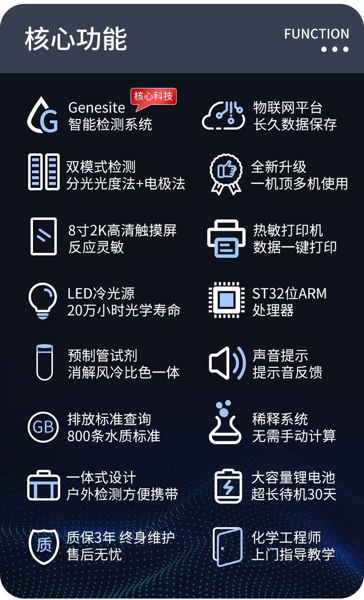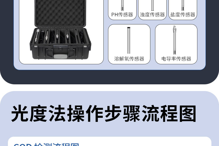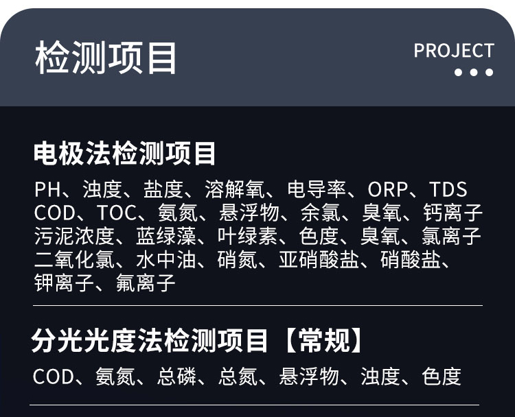 A portable water quality device that can be used in the wild, and the principle of the measurement project conforms to the recognized methods in the environmental protection industry.